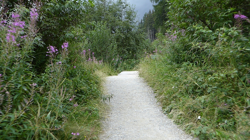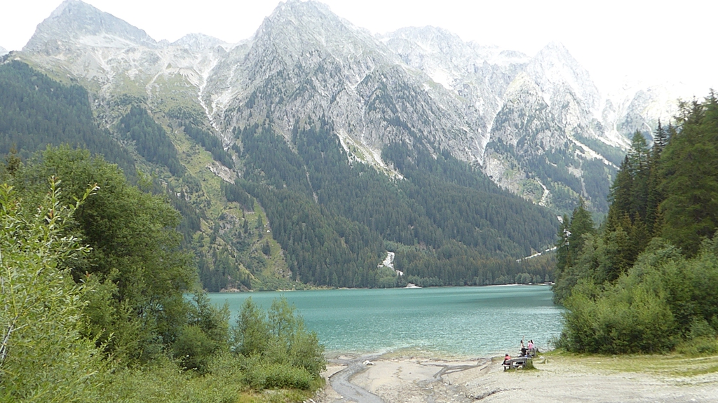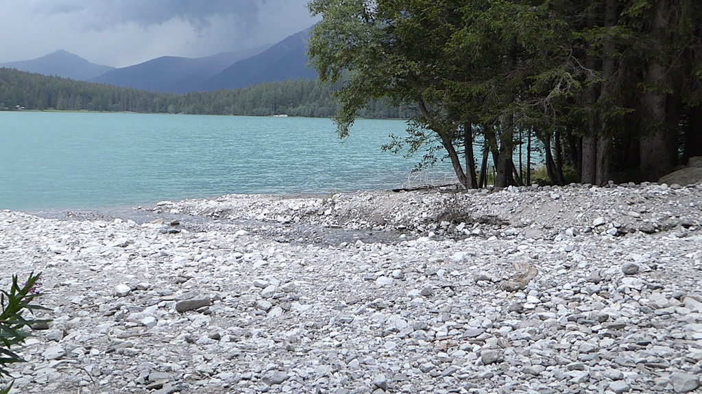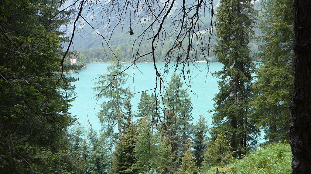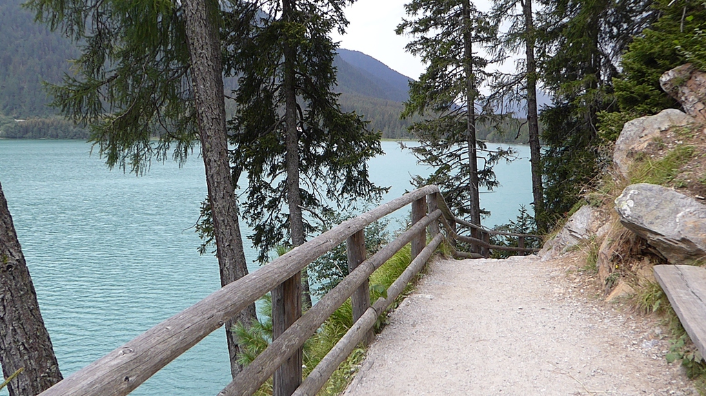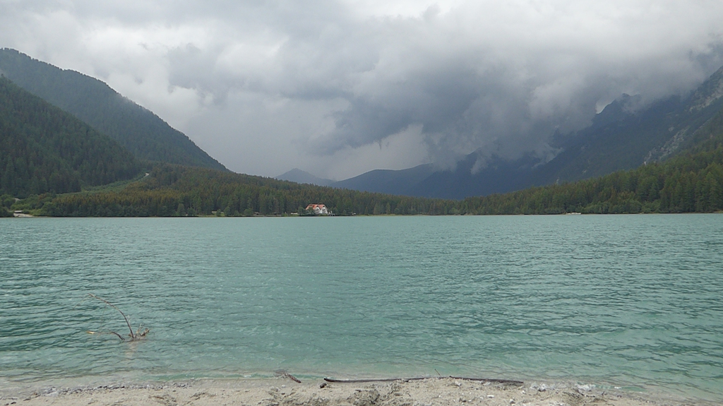 Um an den Ausgangspunkt für unseren Spaziergang zu gelangen fahren wir durch das schöne Antholzertal bis zum Biathlonzentrum. Eine Schautafel weist hier auf den Beginn des Naturlehrpfades hin, auf dem wir gegen den Uhrzeigersinn wandern möchten. Der Erlebnispfad wurde im Jahre 2003 eröffnet und erklärt auf anschauliche Art und Weise Flora und Fauna des Gebietes rund um den See. Hier erfahren wir Wissenswertes zu den wichtigsten Gesteinen, den Naturgewalten, den Baumarten - ein Rundgang für alle Sinne und jede Altersstufe. Besonders bezaubernd ist der See bei Sonnenschein, wenn sich Sonnenlicht im Gewässer funkelt und der See türkisblau erleuchtet. Wir hatten mit dem Wetter leider nicht so viel Glück, denn es zog ein mächtiges Gewitter auf.
