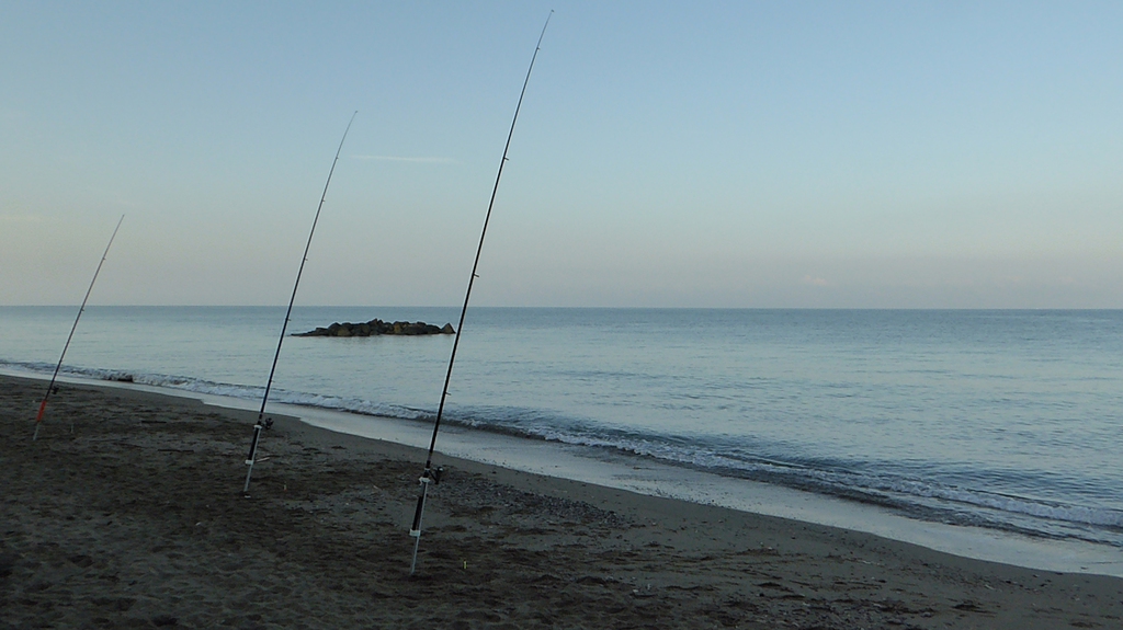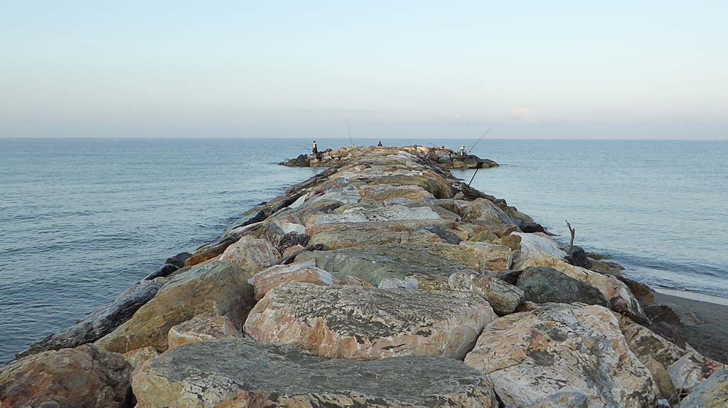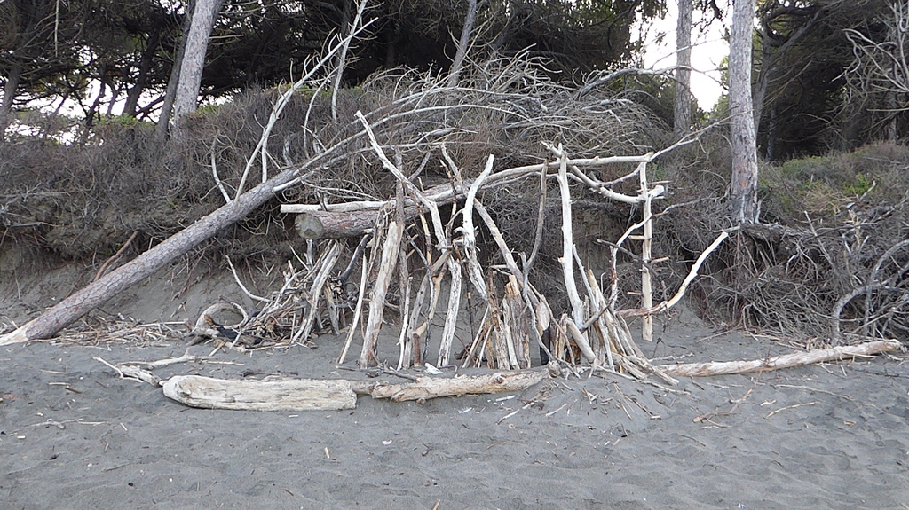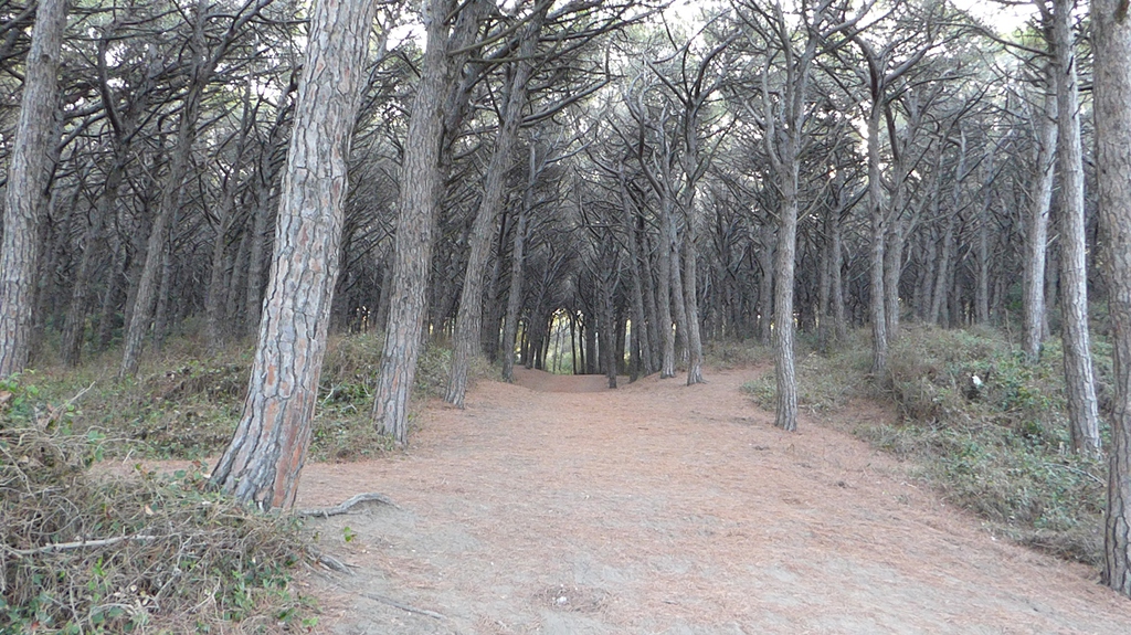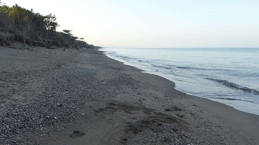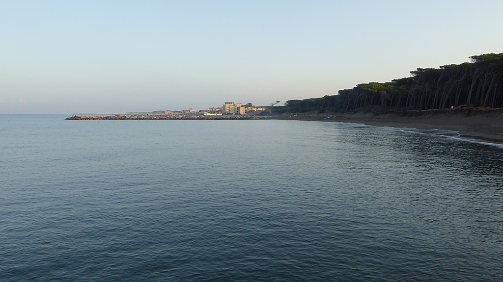 Strandwalk bei Sonnenaufgang bei Cecina. Kilometerweit kann man hier den Strand entlang wandern. Oberhalb des Strandes befindet sich ein großer Pinienwald. Durch den Pinienwald mit schattenspendenden Bäumen mit beeindruckender Geräuschkulisse (Zikaden) geht es wieder zurück nach Cecina.
