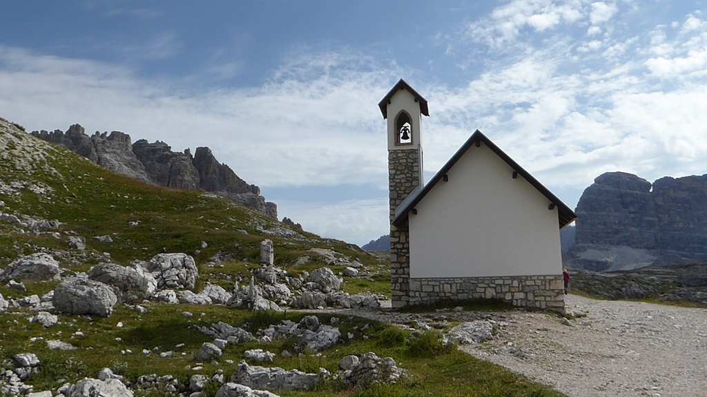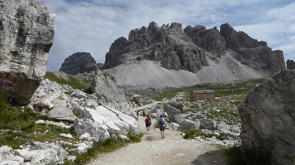 Die Auronzohütte ist die Schutzhütte des Club Alpino Italiano (CAI) und befindet sich unmittelbar südlich des Massivs oberhalb des Sattels Forcella di Longeres in der Provinz Belluno. Bei der Hütte angekommen, geht es weiter auf dem Schotterweg „Steig 101“, der mit leichtem Anstieg an der 2. Lavaredo Hütte (geöffnet von Mitte Juni bis Ende September) und einer kleinen Kirche vorbei zum 3. Paternsattel führt.
