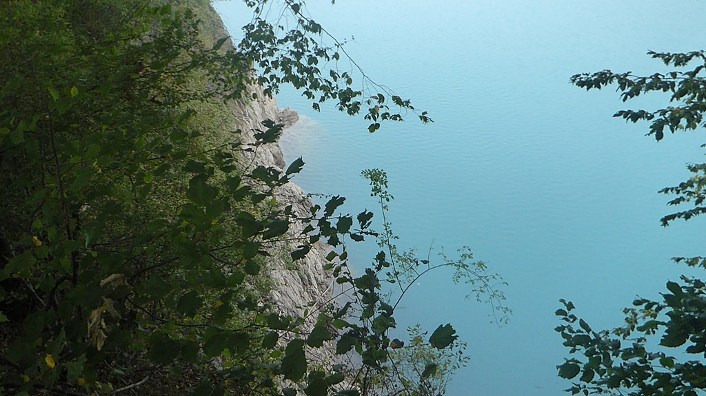 Route: Ab den Infotafeln beim Parkplatz führt ein Durchgang vorbei am „Albergo Stella Alpina“ zu einer breiten Treppe, die direkt zum Seeufer führt. Weiter nach links über Wiesen durch Buschwerk hindurch, wobei man immer wieder an kleinen Uferstellen vorbeikommt. Im Sommer kann man direkt am See entlanggehen, vor allem nach der Schneeschmelze ist der Wasserstand aber so hoch, daß der Wanderweg an vielen Stellen überflutet ist. Dann weicht man auf einen schmalen Pfad aus, der unterhalb der ersten Häuser am Nordwestufer links in den Wald führt und folgt diesem sinngemäß dem Seeufer (deutlich ausgetreten, aber keine Beschilderung), bis man an eine kleine Furt kommt. Hier treffen sich beide Wege wieder, im Herbst und Winter gelangt man trockenen Fußes über den kleinen Bach hinüber – nach der Schneeschmelze heißt es Schuhe ausziehen! Auf der jenseitigen Seite des Bachbetts steigt man eine Treppe hinauf, die über eine kleine Anhöhe hinweg zur ersten Bademöglichkeit führt.