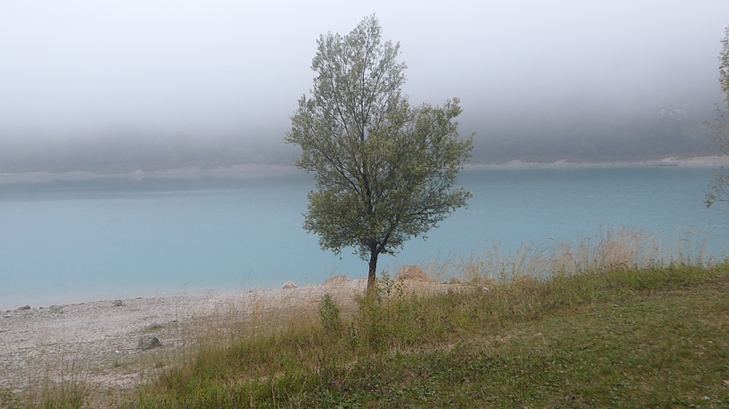 Der Lago di Tenno westlich von Arco gehört zu den schönsten Badeseen der Gardaseeberge. Daher ist die kleine Rundwanderung ideal für Familien mit Kindern oder eine schnelle Abkühlung am Abend nach einem heißen Klettertag. Wir haben einen Nebeltag erwischt - dennoch lohnt sich ein Spaziergang um den schönen See.