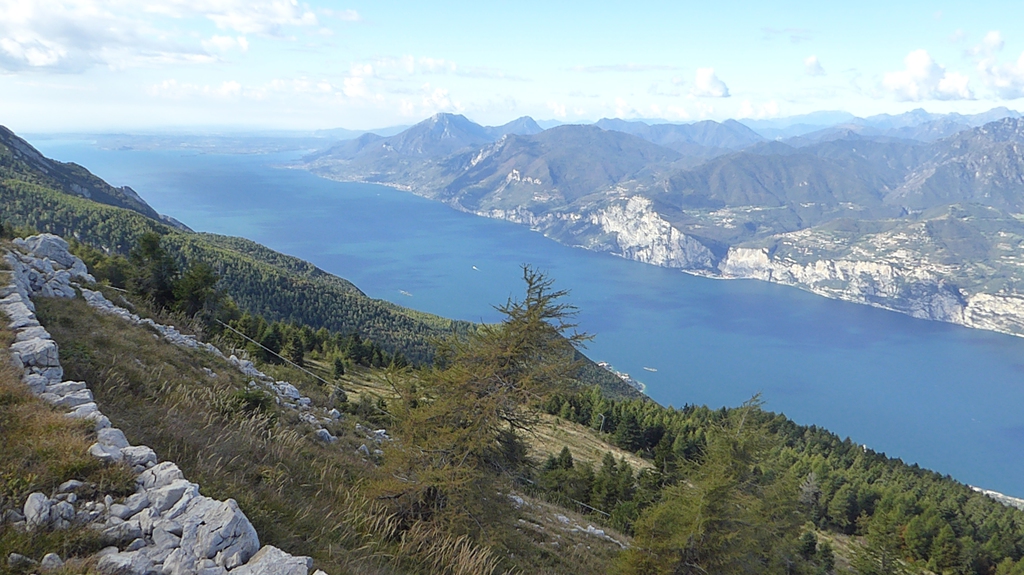 Belohnt wird man mit einem hervorragenden Blick auf Malcesine, den Gardasee und ins Etschtal bis nach Rovereto. Dazu gibt es noch eine große Steinmännchen-Wiese und einen Blick in eines der großen Gerölltäler am Monte Baldo.