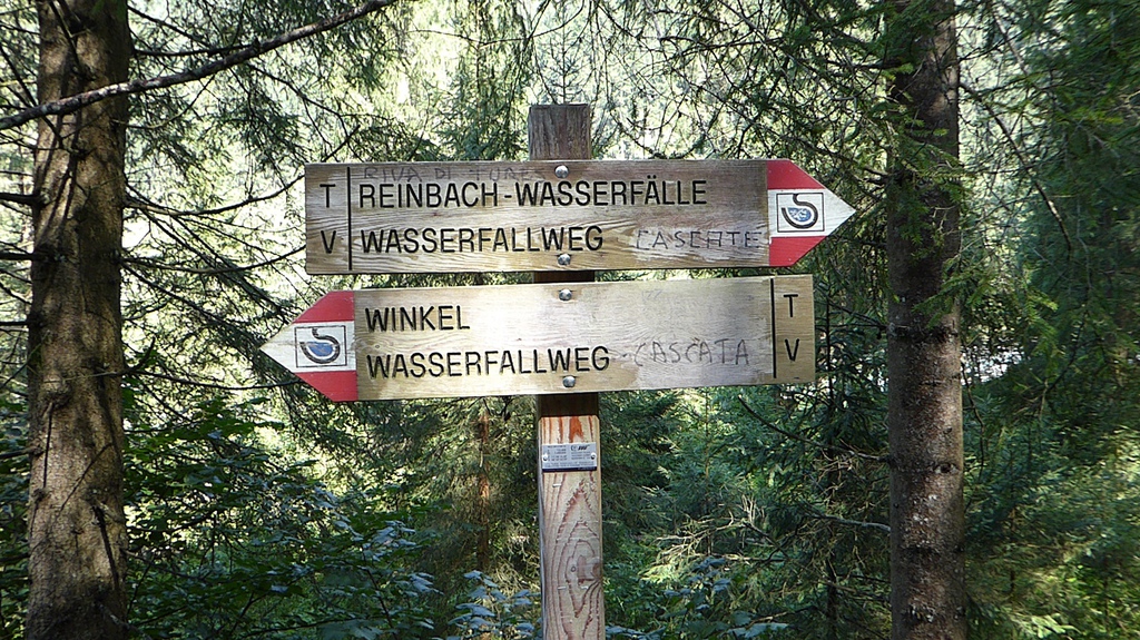 Ausgangspunkt für unsere Tour ist der Parkplatz in Sand Taufers, wo wir den Ahrnbach überqueren und uns an den Verlauf des Baches halten. Bei einer Weggabelung ausserhalb des Ortskerns folgen wir dem Weg Nr. 2 in die Reinbachschlucht, wo wir bald darauf den ersten 10 m hohen Wasserfall erreichen. Übringens: Am Eingang zum Naturpark befindet sich auch eine Schautafel, welche über das Gebiet der Rieserferner informiert.