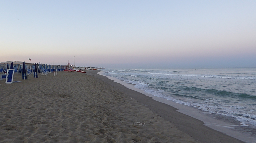 Früh morgens zum Sonnenaufgang beginnt unser Strandwalk in Pisa. Südlich von Marina di Pisa starten wir in Tirrenia und laufen bis kurz vor Calambrone.