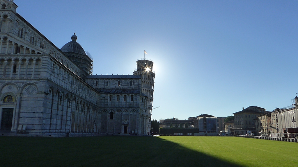Nach dem herrlichen "Frühsport" nutzen wir die Lage und machen einen Abstecher zum berühmten Wahrzeichen von Pisa. Der schiefe Turm ist in den frühen Morgenstunden noch nicht stark frequentiert und so können wir das ungewöhnliche Bauwerk in aller Ruhe bestaunen, während zahlreiche Händler und Soveniershops sich gerade auf den Massentourismus vorbereiten.