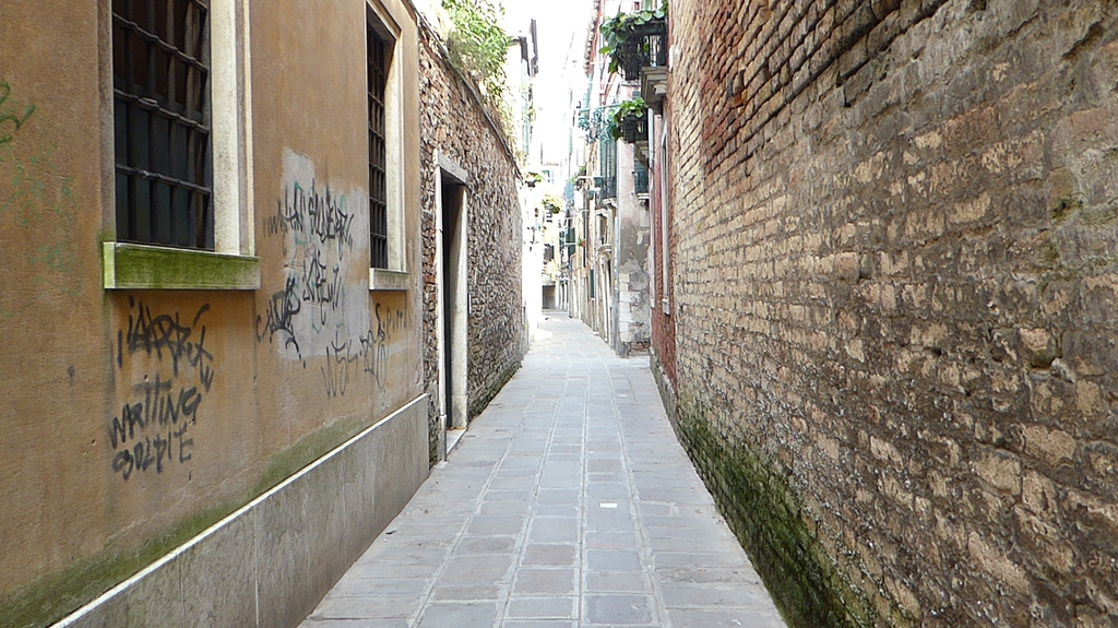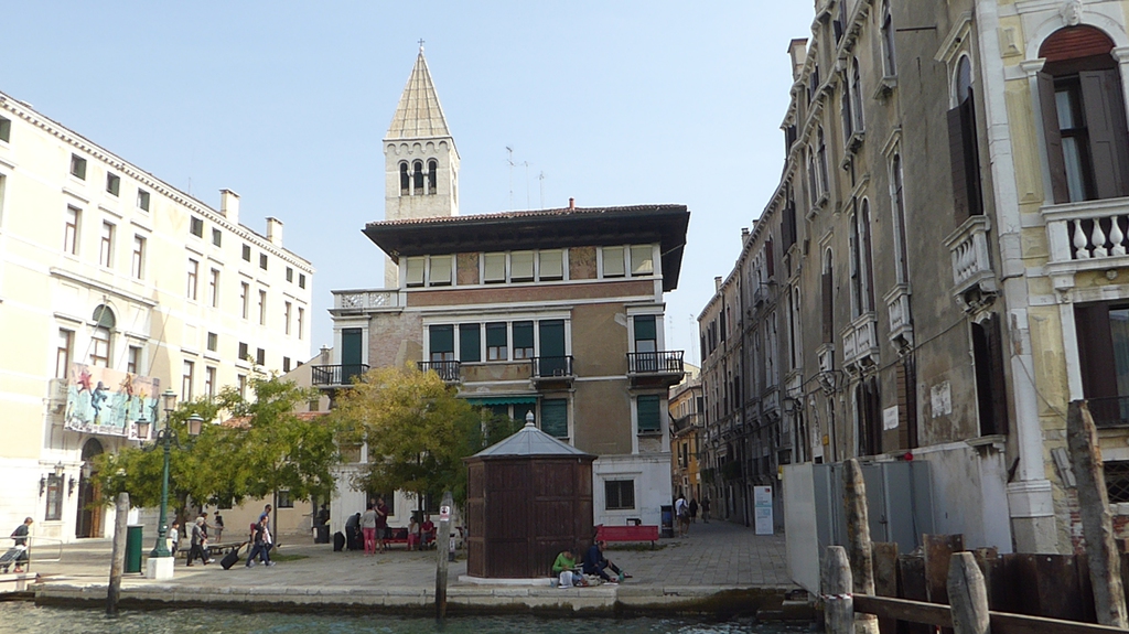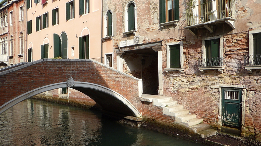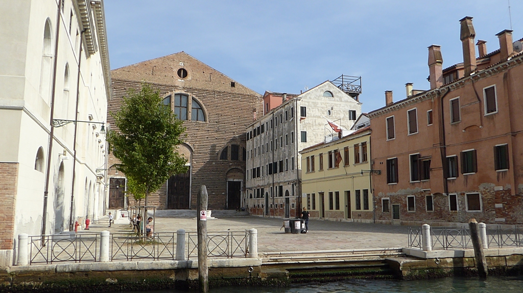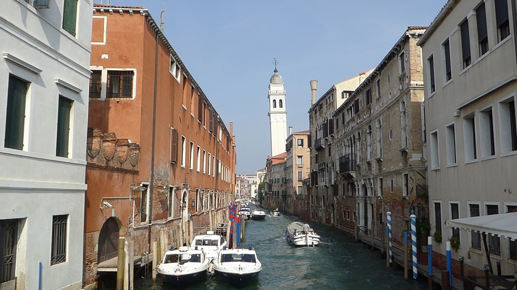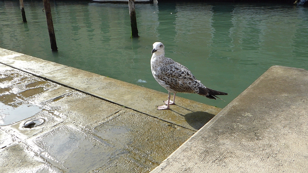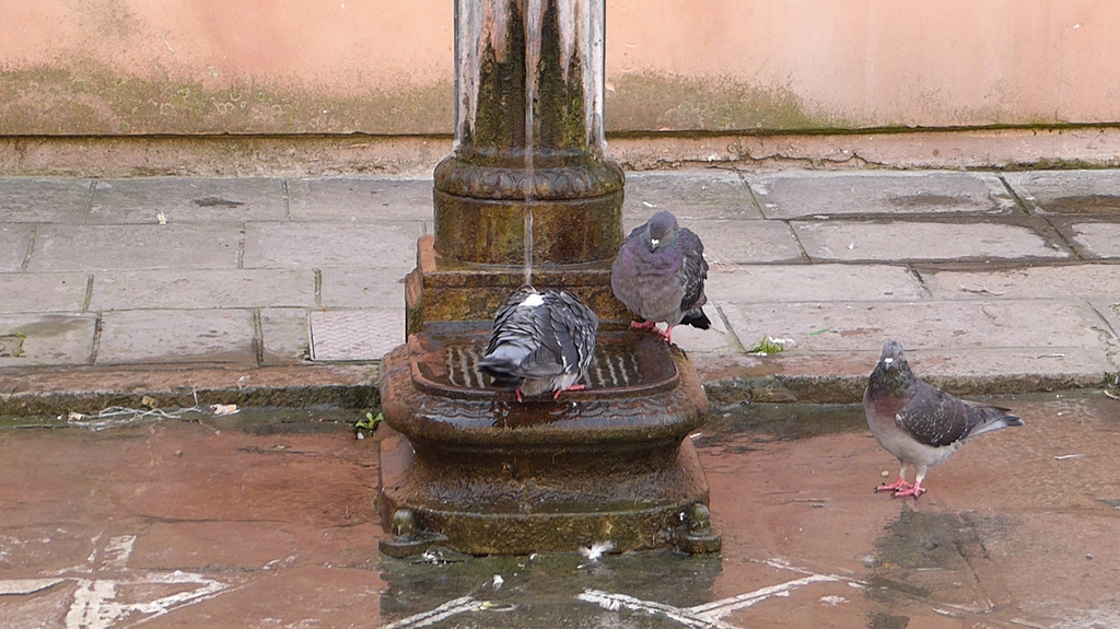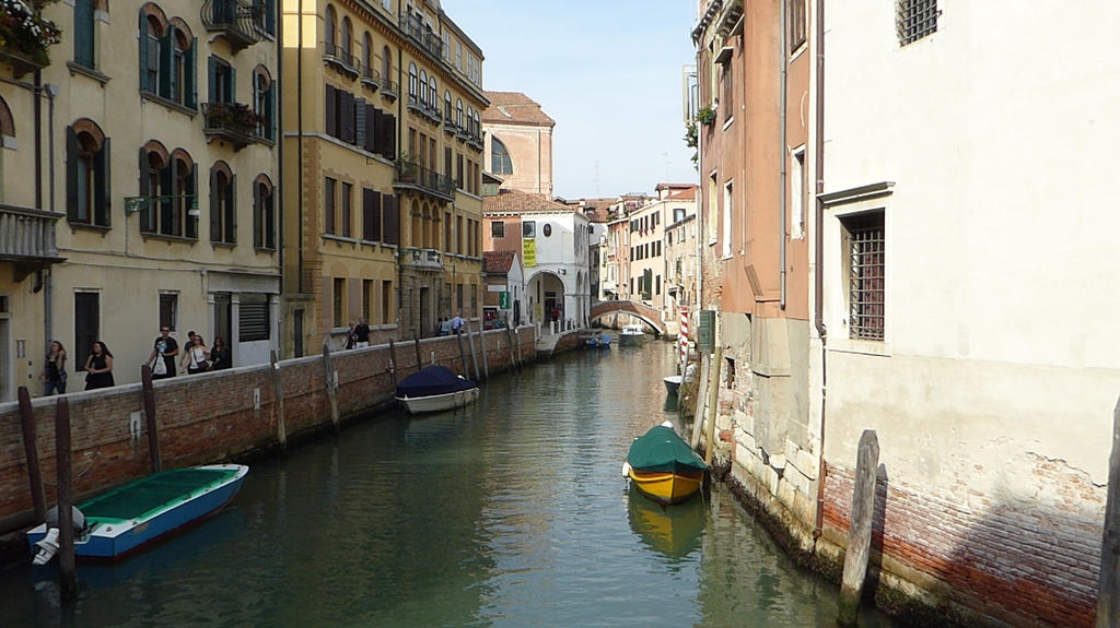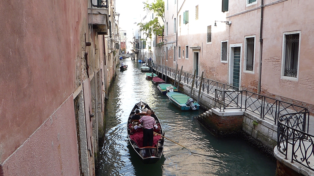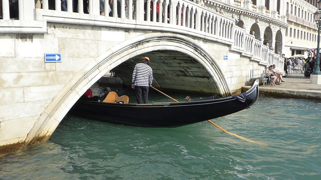 Wir staunen nicht schlecht, als wir einige Tauben entdecken, die in einem kleinen Brunnen baden und sich etwas erfrischen. Bei der Hitze ist das aber auch kein Wunder. Wir gehen nun weiter in Richtung Nordosten durch die Häuserschluchten und bleiben immer wieder stehen, um den Gondoliere beim geschickten manövrieren durch die schmalen Kanäle zuzusehen. Einige singen sogar für ihre Kunden, während ein schwarzes Schaf auf seinem Smartphone herumdaddelt.