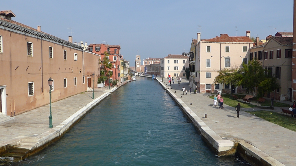 Am Hotspot Markusplatz angelangt vermeiden wir die Touristenströme in Richtung Rialto-Brücke und halten uns rechts an der Uferpromenade entlang in Richtung Parco dello Rimembranze. Dies ist ein kleiner Park am Ende der Landzunge des Zentrums von Venedig. Wir laufen zuerst die Riva degli Schiavoni entlang und dann weiter über die Riva Cà di Dio und Riva S. Blasio bis zur Riva dei Sette Martiri.