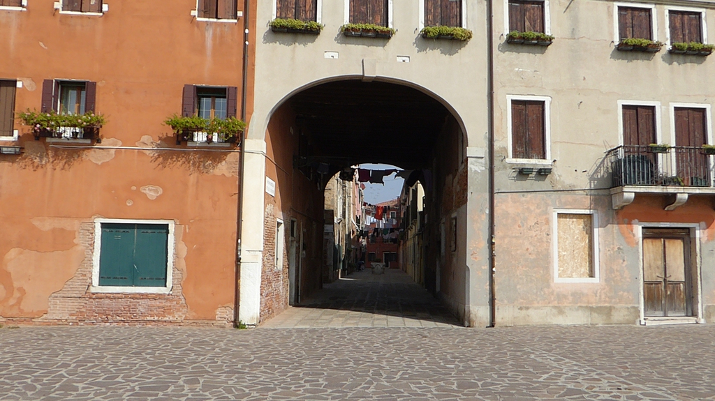 Wir genießen die Aussicht und die Ruhe im Park und gehen anschließend wieder zurück an der Hafenpromenade entlang. Zwischen der Riva S. Blasio und Riva Cà di Dio verlassen wir die Uferpromenade und biegen rechts in das Häuserdurcheinander ab. Nach kurzer Zeit erreichen wir die Arsenale di Venezia - Arsenal ist der Name der Schiffswerft, des Zeughauses und der Flottenbasis der ehemaligen Republik Venedig. Das Arsenal enthielt neben den Schiffsbecken, den Schreinereien, den Kalfateranlagen und einer langen Seilhalle, in der die Schiffstaue gedreht wurden, auch Erz- und Gießhütten sowie Pulverlager und das Waffendepot, was eine strenge Überwachung der Belegschaft durch die venezianische Sicherheitspolizei nötig machte. Das Arsenal arbeitete außerordentlich effizient. Bereits Im 14. Jahrhundert erfolgte die Produktion der Galeeren in streng rationalisierten Arbeitsabläufen. Jedes Handelsschiff war so konstruiert, dass es in kürzester Zeit zu einem Kriegsschiff umgebaut werden konnte.