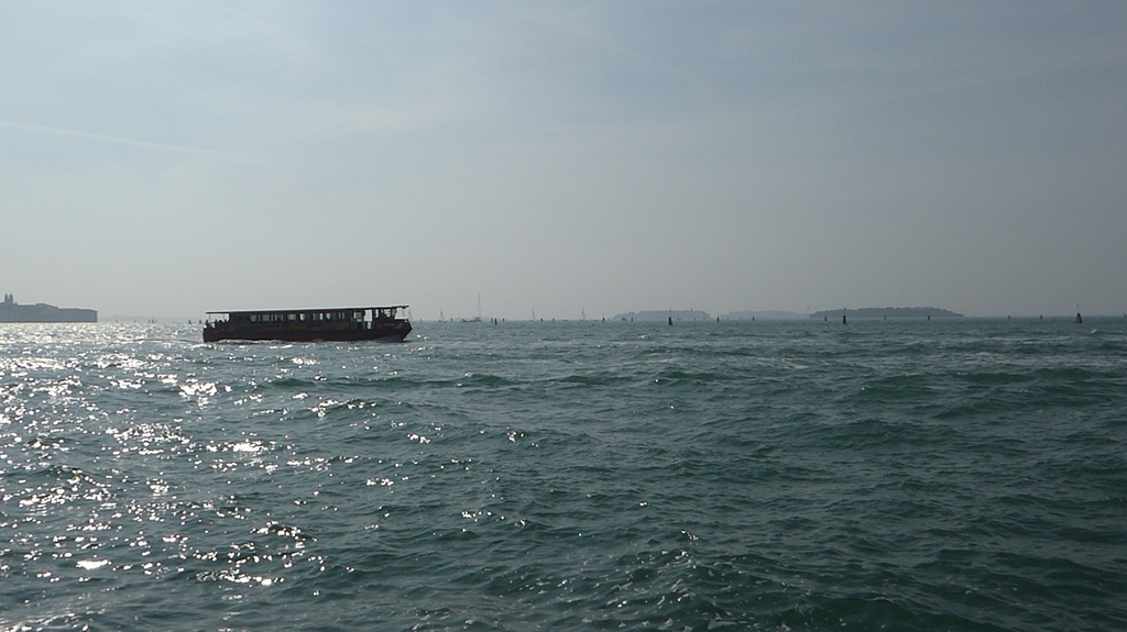 Wir parken in Tronchetto und fahren nun mit dem Linienschiff über den Canal Grande bis zum Markusplatz (Piazza San Marco). In Tronchetto ist es morgens noch sehr neblig, aber je weiter wir mit dem Boot fahren, desto mehr kann sich die Sonne durchsetzen.