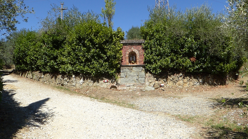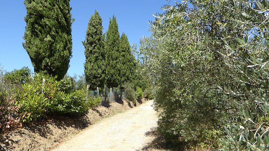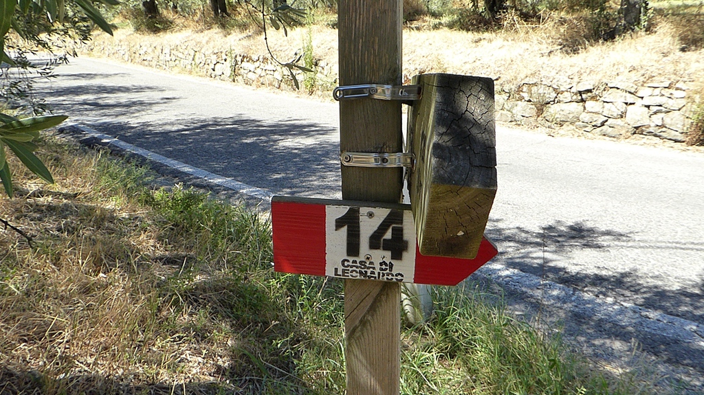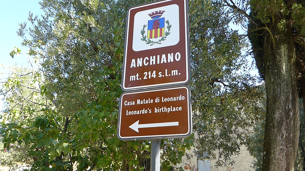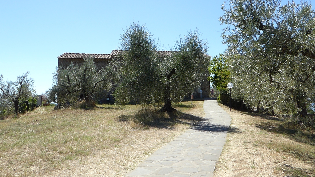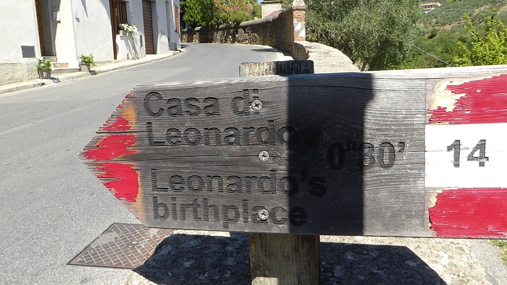 Von der Kreuzung am Fuße des befestigten Ortskerns von Vinci folgt man der Straße hinauf in nordöstlicher Richtung. Es geht ein kurzes Stück auf der befahrenen Straße entlang und biegt nach der Kirche und zwei Museen rechts in den Weg Nr. 14 ein. Der Wirtschaftsweg geht steil nach oben und biegt dann links ab. Es geht nun weiter an Olivenhainen entlang bis wir das Geburtshaus erreichen.