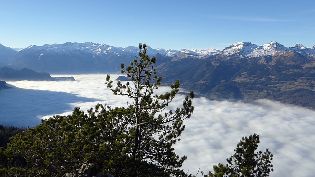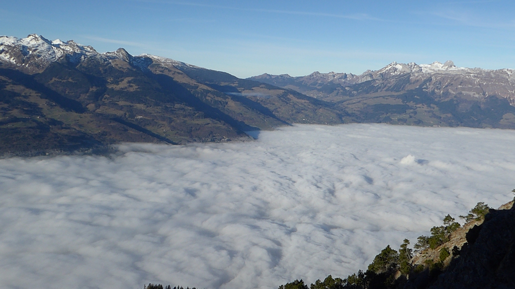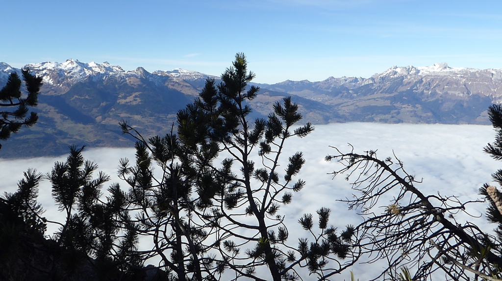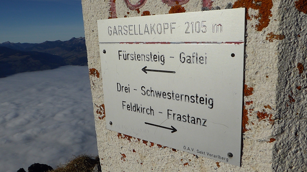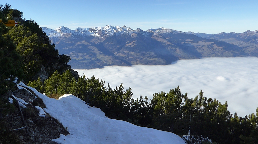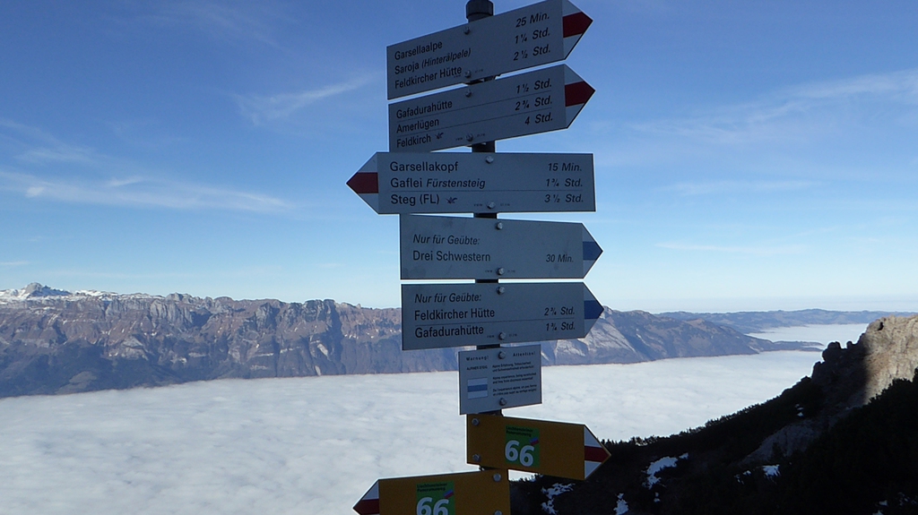 Ein Hoch jagt in diesem Dezember das nächste, aber wirklich schön ist es erst oberhalb des Nebels in den Bergen. So parken wir in Gaflei oberhalb von Vaduz auf 1.491 m. Von hier aus sind die Drei Schwestern mit 3 Stunden angegeben.