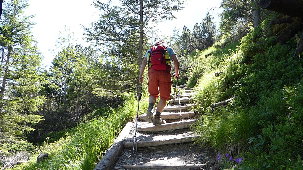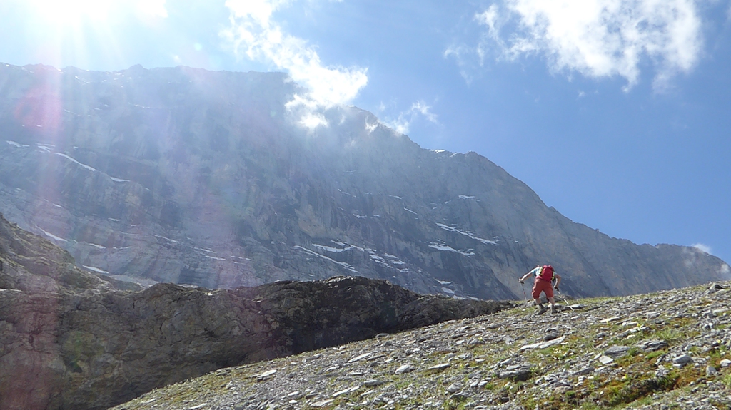 Wir bleiben immer wieder stehen und lassen unsere Blicke in die sich abwechselnden Perspektiven in die Wand und die herrliche umliegende Bergwelt schweifen. Von der Anstrengung her hält sich der Weg in Grenzen - insgesamt überwindet man jedoch 712 Höhenmeter nach oben.