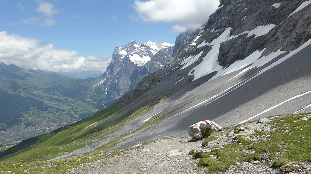 Aufgrund der exponierten Lage, hat man natürlich auch eine grandiose Aussicht. Das Panorama erstreckt sich von der Jungfrau über Männlichen und Grindelwald, bis hin zum Schreckhorn. Neben der Fernsicht, gibt es auch in der Nähe des Weges einige Naturschönheiten. So überquert man mehrere Wasserläufe, die als Wasserfall von der Nordwand herabstürzen. Anfang Juli gibt es noch ein paar wenige kleinere Schneefelder, die überquert werden müssen. Zahlreiche "Steinmannlis" weisen einem zudem den Weg.