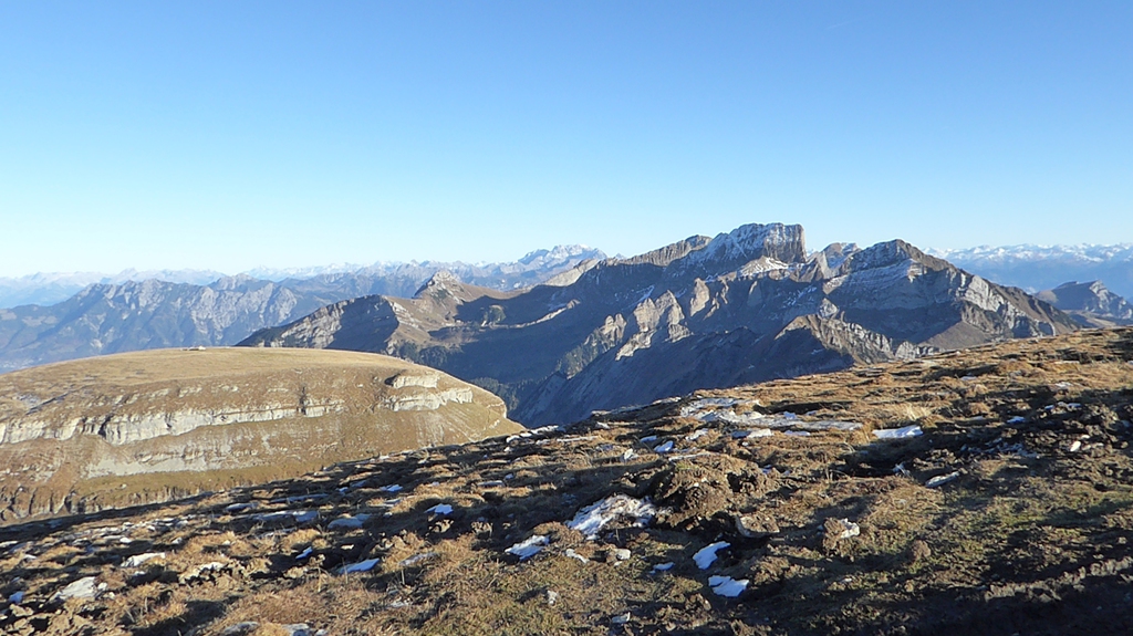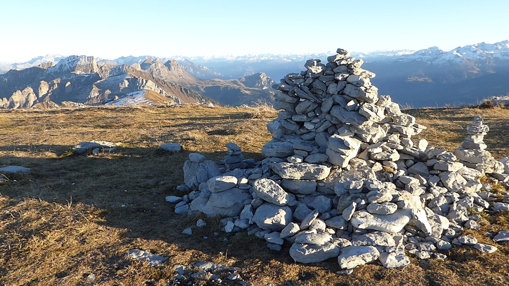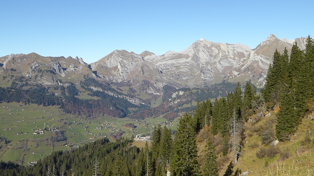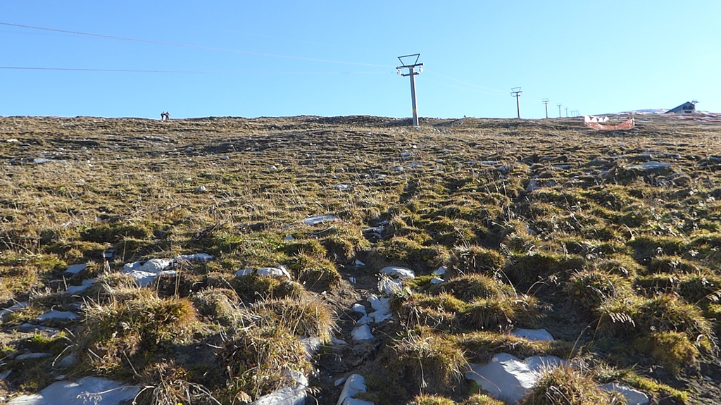 Fahrt mit der Standseilbahn nach Iltios (1.342 m). Dann sind wir den Normalweg zum Chäserrugg (2.262 m) gelaufen. Die letzten monotonen 400 Höhenmeter auf dem breiten und langen Rücken zum Gipfel des Chäserruggs zogen sich etwas in die Länge, es ging einfach immer den Skiliftmasten entlang. Kurz vor dem Gipfel kamen Schneefelder zum Vorschein, die aber nicht weiter störten.