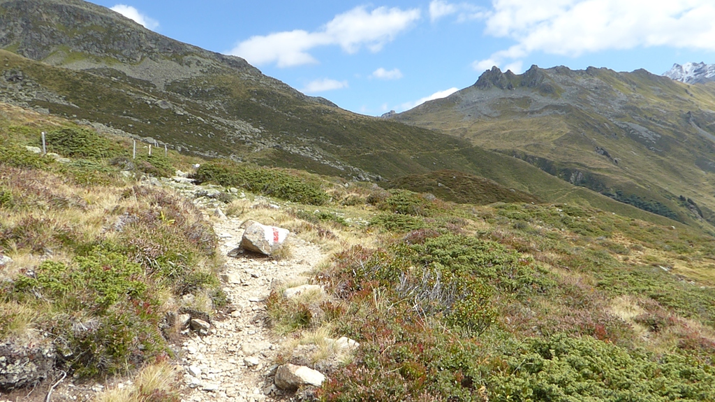 Wandern, wo einst Säumer und Schmuggler gingen - Ausichtsreiche Höhenwanderung zur schweizerisch-österreichischen Landesgrenze auf dem Schlappiner Joch und dann steil hinab nach Schlappin (See) und Klosters Dorf.