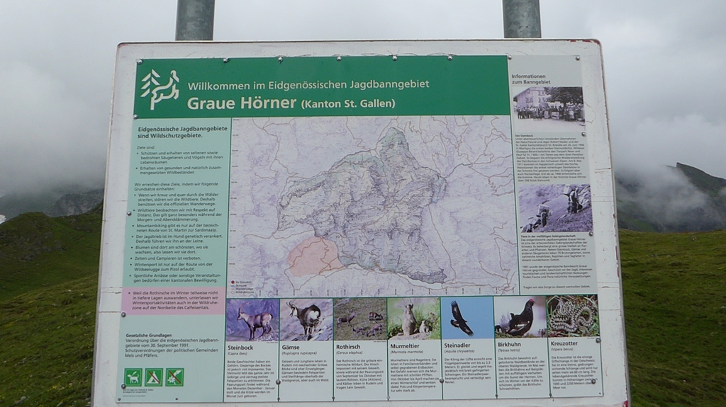 Wir parken in Wangs in der Nähe von Bad Ragaz an der Talstation. Damit beginnt das Seilbahnfahren - insgesamt 3 x. Zuerst geht es mit der Kabinenbahn nach Furt. Anschließend erfolgt der Wechsel auf die Sesselbahn, die nach Gaffia führt. Danach muss man wieder umsteigen zur Sesselbahn, die zur Pizolhütte führt. Der Wetterbericht sagte schönes Wetter voraus, aber es tummeln sich doch einige Wolken oben in den Bergen. Die Aussicht ist dennoch fantastisch - man sieht Ostschweizer und Bündner Alpen, Rätikon, das Rheintal und in der Ferne funkelt der Bodensee.