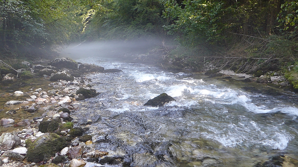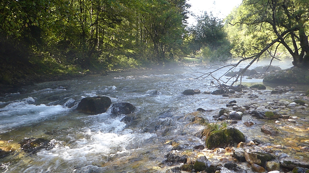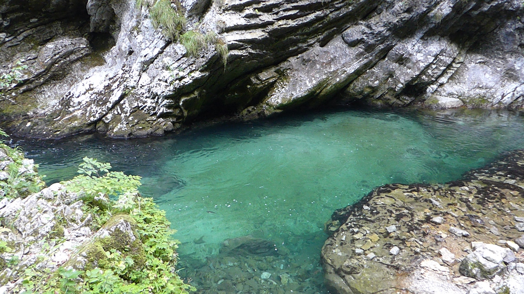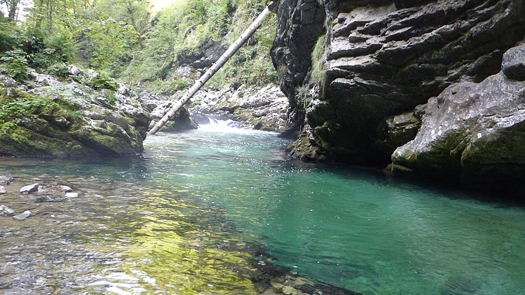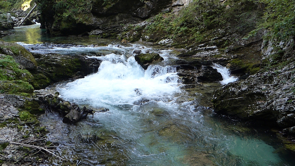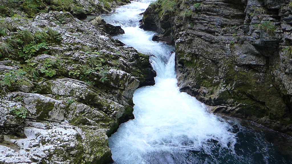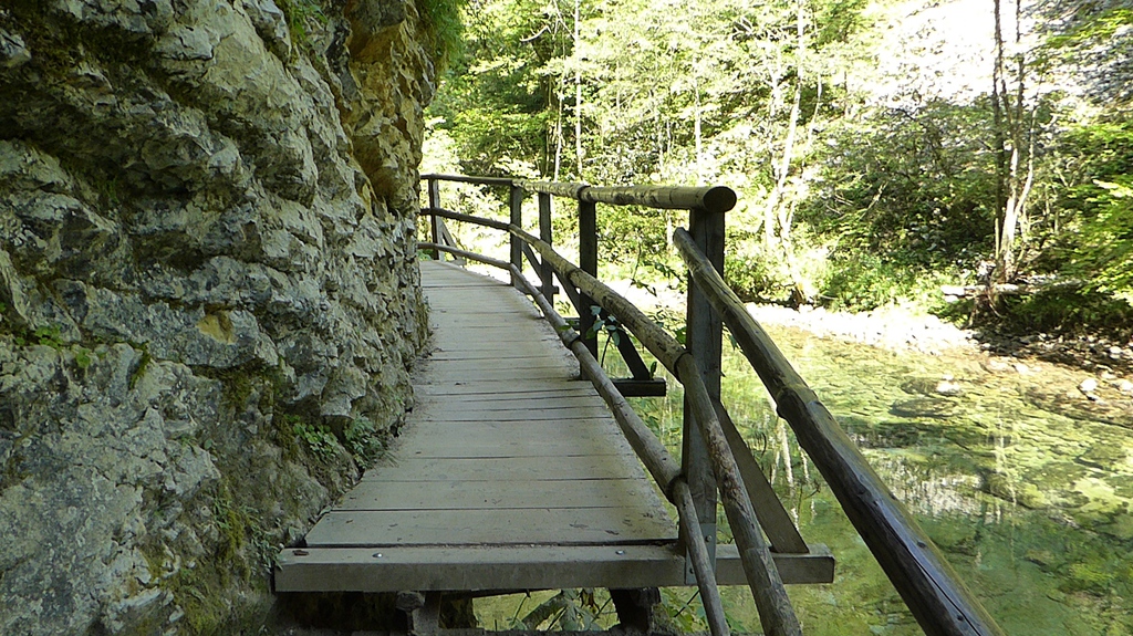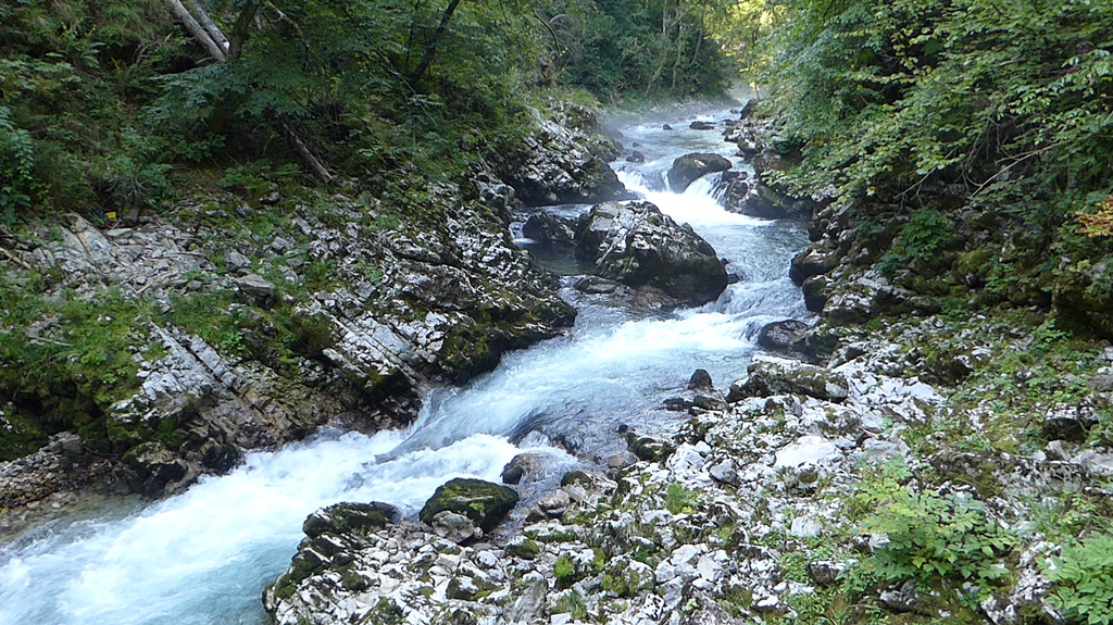 Der grünblau schimmernde Fluss Radovna, der in die Save mündet grub sich im Laufe der Jahrtausende zwischen die beiden mächtigen Berge Hom und Borst. Besucher können sich auf eine faszinierende Wanderung entlang des 1,6 km langen Lehrpfades durch die Vintgar Klamm begeben. Um die Stege und Wege zu erhalten ist am Eingang der Schlucht ein kleiner Eintrittspreis zu entrichten.